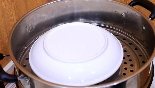 2.准备一个蒸碗,四周刷上油防止粘,把牛奶蛋液倒进去,放入上大气的蒸锅里面,用盘子盖住防止水气滴入,中火蒸12分钟就可以了。