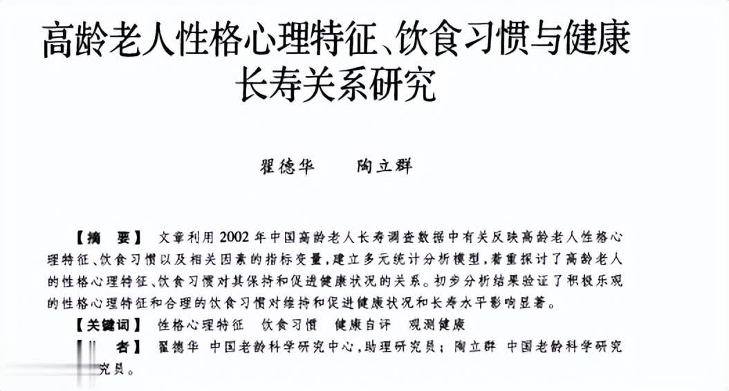 [1] 翟德华,陶立群,高龄老人性格心理特征、饮食习惯与健康长寿关系研究,中国人口科学,2004-12-30