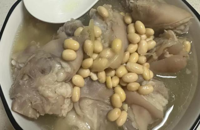 黄豆提前浸泡 4 - 6 小时,猪蹄洗净切块,焯水去腥。将猪蹄放入砂锅中,加入泡好的黄豆、姜片、葱段,足量清水,大火烧开后转小火慢炖 1.5 - 2 小时,至猪蹄软烂,加盐调味即可。