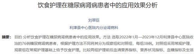 [1]刘翠臣.饮食护理在糖尿病肾病患者中的应用效果分析[J].医药前沿,2025
