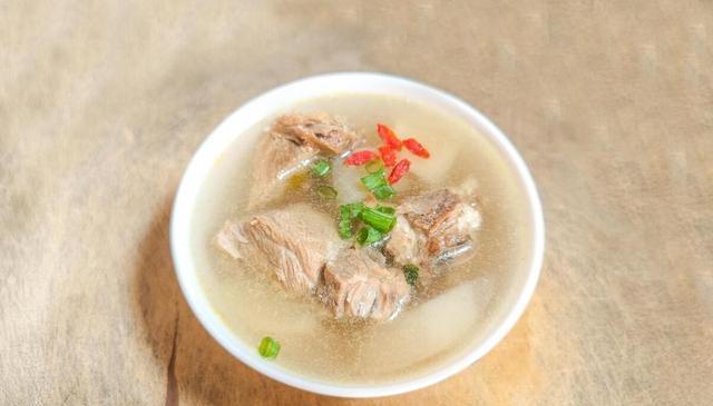 7. 盛出享用:汤炖好后,捞出姜片,可以根据个人喜好加点香菜或葱花做点缀,增加香气。此时汤味浓郁,萝卜清香,排骨肉质嫩滑。