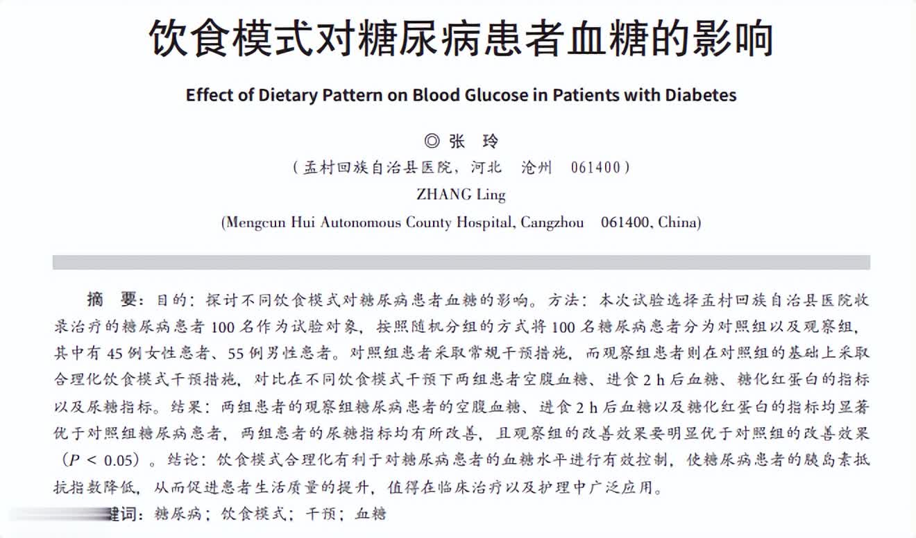 [1]张玲.饮食模式对糖尿病患者血糖的影响[J].现代食品,2024-02-15.