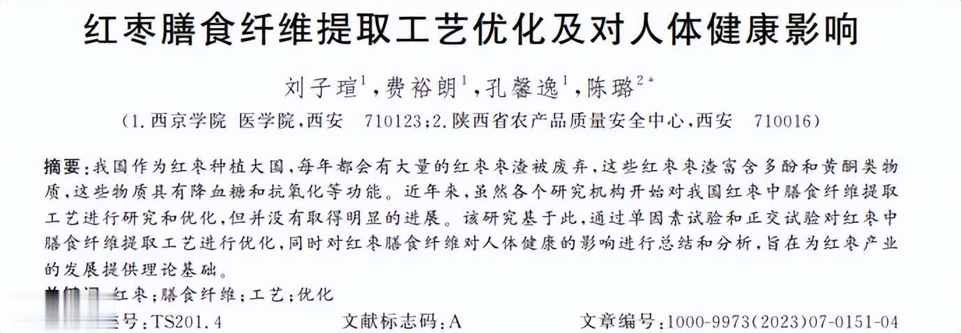 [1]刘子瑄;费裕朗等. 红枣膳食纤维提取工艺优化及对人体健康影响[J].中国调味品,2023-07-03.