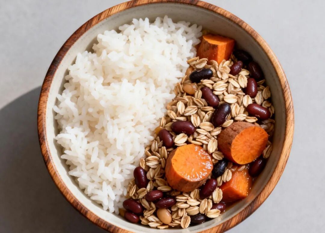 二是主食换一换,把一半白米饭换成燕麦、杂豆、红薯等,饱腹感更强,血糖也更平稳。