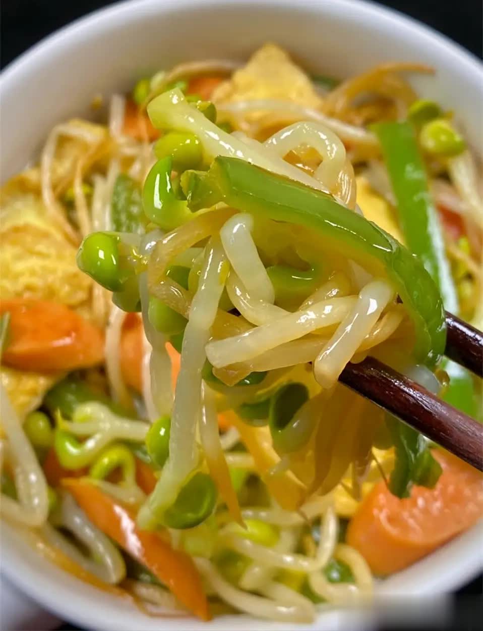 二、青椒鸡蛋炒豆芽