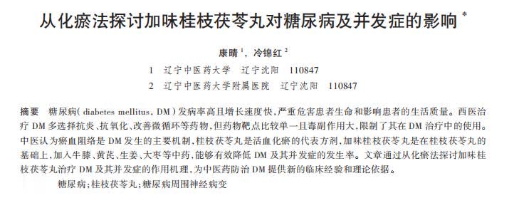 [1]康晴.从化瘀法探讨加味桂枝茯苓丸对糖尿病及并发症的影响,中医药临床杂志,2024-07-20