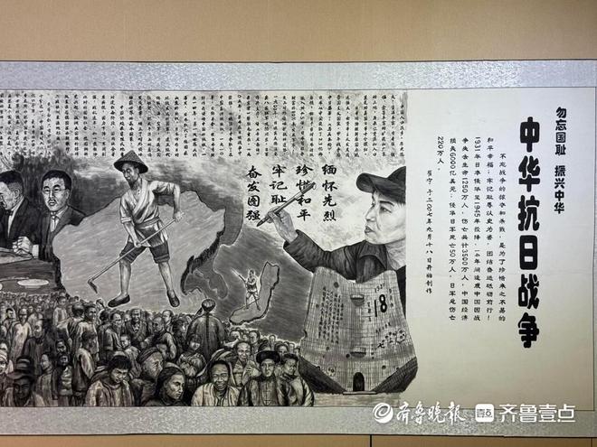 9月5日,在龙口市美术馆,一幅50米长的抗战长卷徐徐铺展,瞬间将观众拉回1931-1945年的烽火岁月——这是退休警营画家崔宁用30年光阴、100多万字走访记录、半生心血凝结的“历史长卷”,带观众穿越历史硝烟,重温中华民族的不屈抗争。