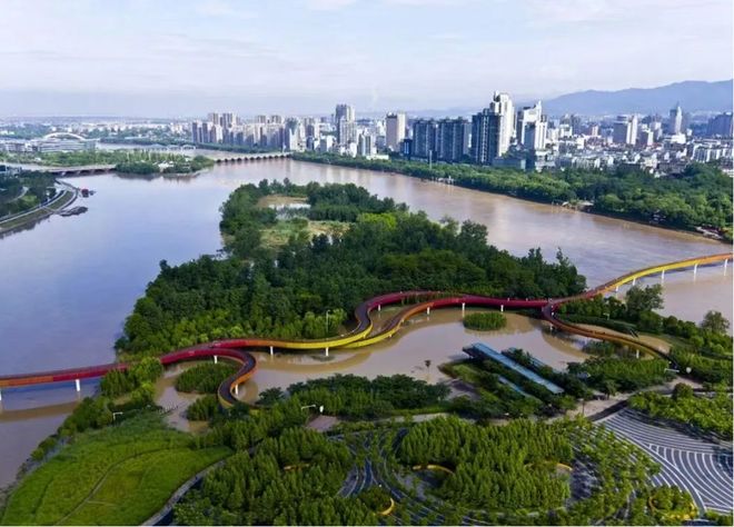 最引人注目的是,公园内一座蜿蜒多姿的步行桥日均使用人数达4万余人次,不仅解决了人流疏散问题,也成为了金华城市的新名片。