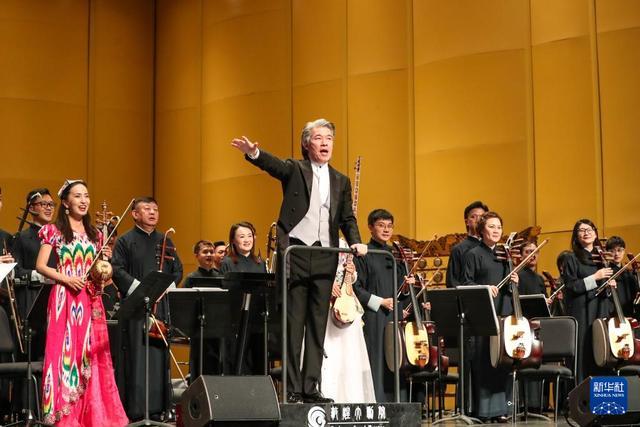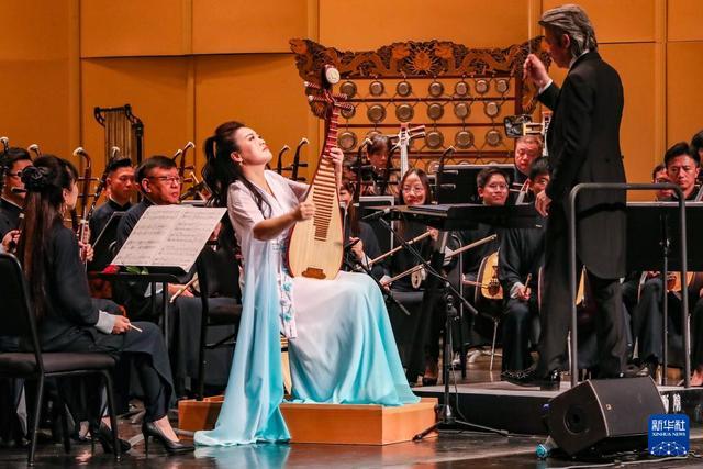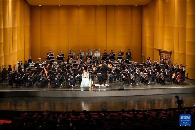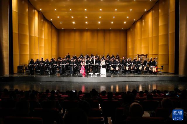 这是9月21日在敦煌大剧院拍摄的《敦煌丝绸之路音乐会》现场。 9月21日晚,由甘肃省文化和旅游厅、甘肃省人民政府港澳事务办公室、香港特别行政区政府驻北京办事处共同主办,香港中乐团演出的《敦煌丝绸之路音乐会》在敦煌大剧院举行,该场音乐会是第八届丝绸之路(敦煌)国际文化博览会的重要文化活动之一。 新华社记者 郎兵兵 摄