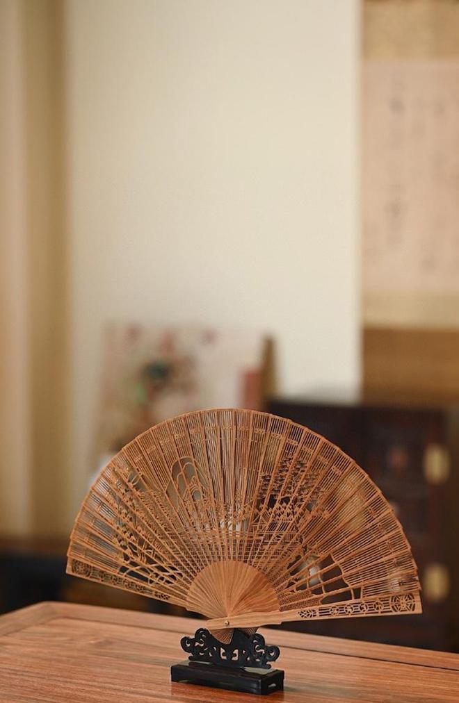 In the height of summer, sandalwood fans are believed to calm the mind and refresh the senses. A Suzhou saying goes, "With a sandalwood fan in June, no heat will ever make you feel faint." After summer, storing the fan in a chest not only preserves it but also helps prevent clothes from being damaged by moths. Sandalwood fans are mostly favored by women, used both for adornment and decoration, which is why their design and structure are rich in ornamental charm.