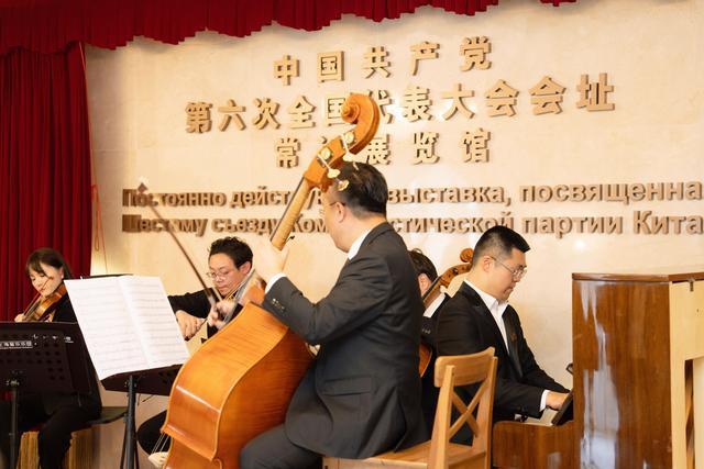 在中共六大会址常设展览馆,乐团以吕其明先生亲自改编的钢琴与弦乐六重奏《红旗颂》完成了一场特殊演出。在这座见证中国共产党重要历史转折的场馆内,乐团党员在演奏中重温党的奋斗历程,深刻感悟“从哪里来、往哪里去”的初心使命。此次演出不仅是红色经典的国际传播,更成为乐团开展主题教育的生动实践,让党员在跨越国界的红色场域中,进一步坚定以艺术服务人民、传承红色文化的信念。