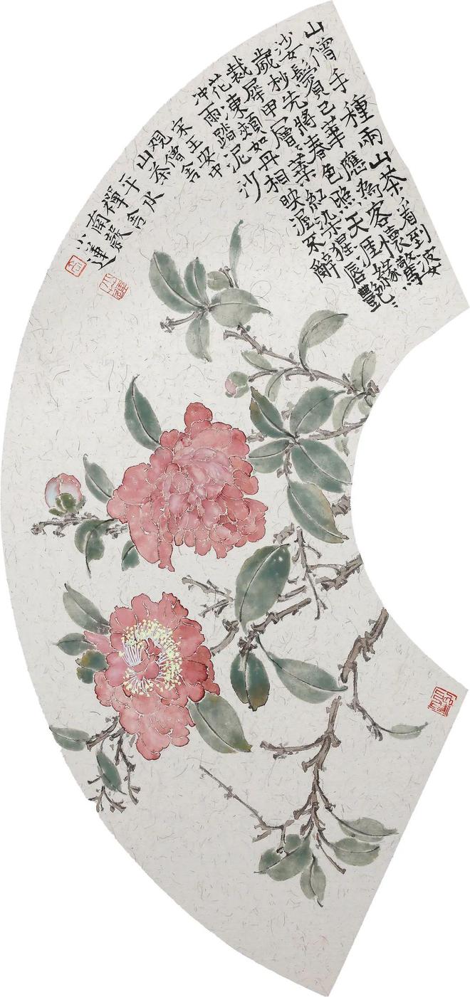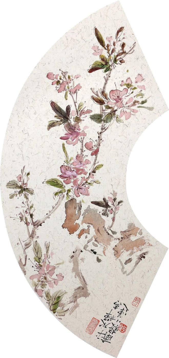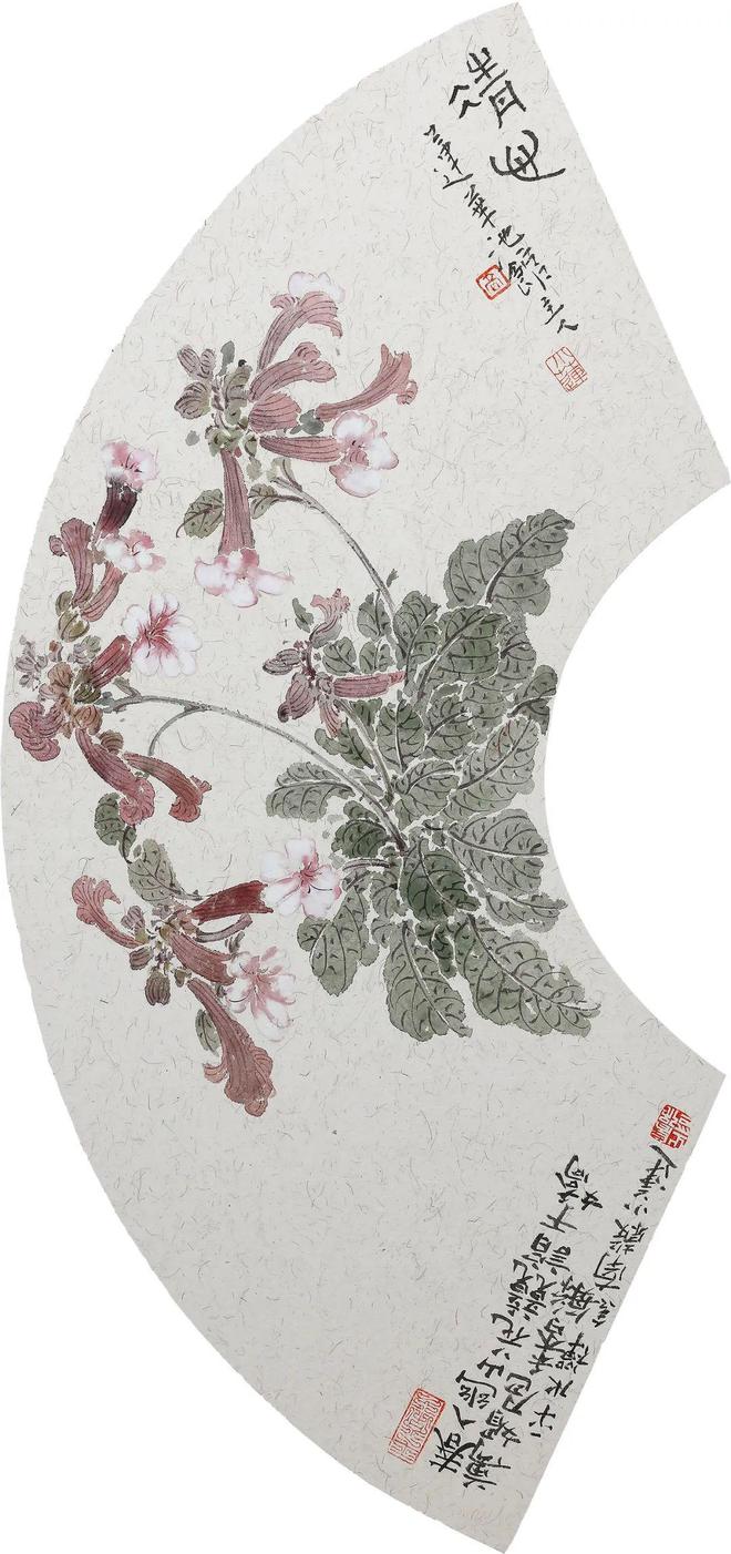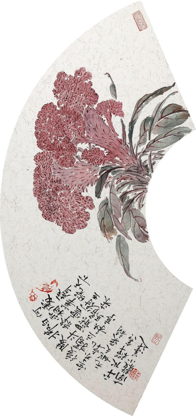 高强(南榖小莲)的扇面取传统没骨法,色墨在隐现间晕染如呼吸,既承宋元意趣、明清朴拙,又脱却俗气火气,自见雅朴清气。笔下石榴、山茶、扁豆皆成诗——墨色浓淡藏着“意贵乎远”的清简,花果鲜活处似与自然坦诚对话,将市井蔬果点化为“繁华中见超脱”的文人闲趣。这组扇面每一幅于笔墨中透出“静气成画”的诗篇。