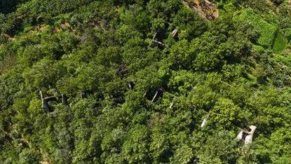 经过一轮强降雨的冲刷,沙厂村南山上的废弃房舍几乎被草木掩藏。上山的小径荒草丛生,所幸在当地村民齐春福的带领下,让记者少走了很多弯路。