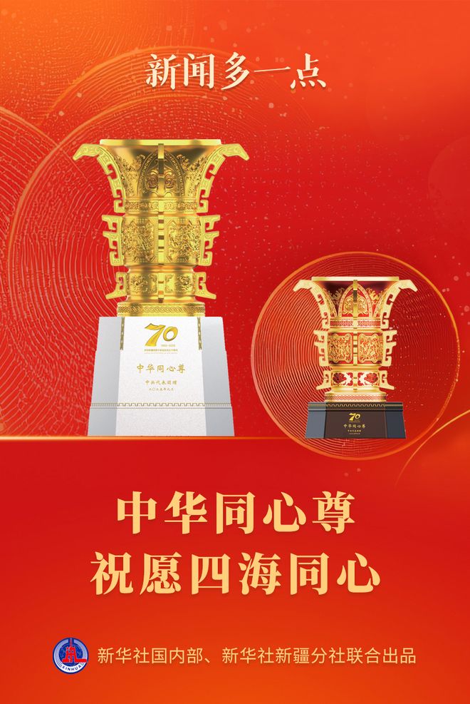 9月25日,中央代表团向新疆维吾尔自治区赠送纪念品,其中中华同心尊格外令人瞩目。