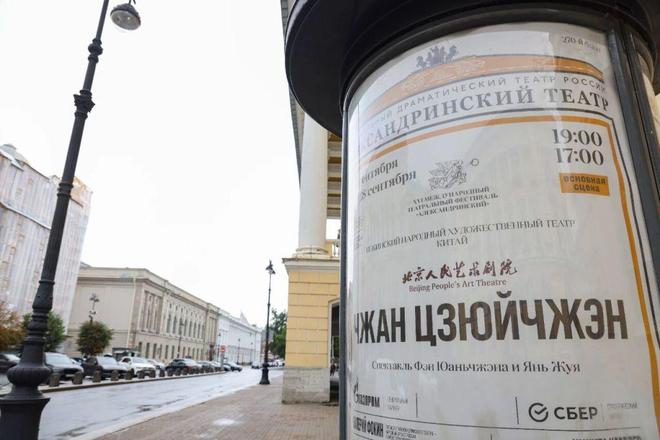 圣彼得堡街边橱窗内张贴着北京人民艺术剧院《张居正》的演出海报。本文图片摄影:李春光