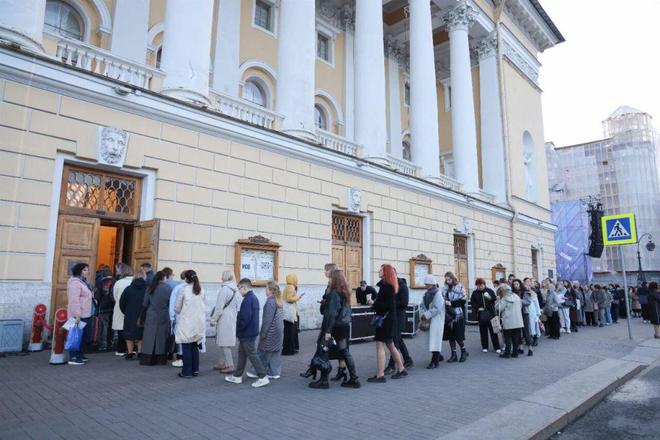 当地时间26日晚6点40分,等候入场的观众在古老的亚历山德琳娜剧院门口排起了长队,还有不少没有买到票的当地观众与中国留学生在票房前翘首等待。
