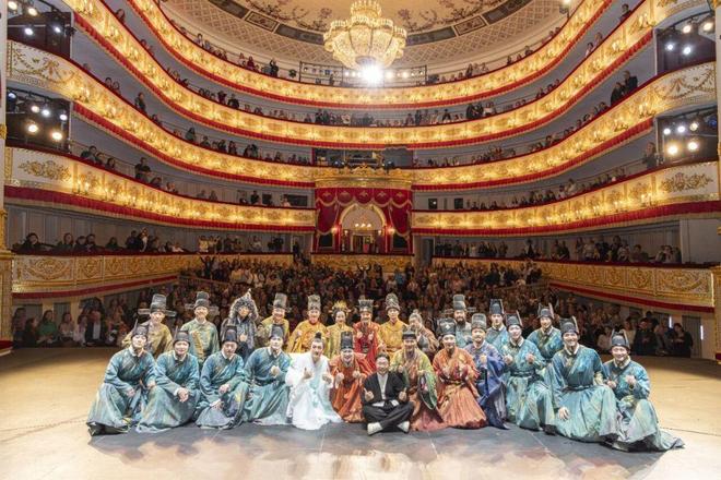 具有二百余年历史的亚历山德琳娜剧院本身就是一座博物馆建筑,舞美团队在保护好原有舞台的前提下,针对该剧场纵深高、副台空间有限的特点,灵活调整舞台布景及灯光方案,为后续合成争取了宝贵时间,确保了演出成功。