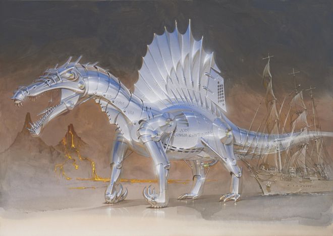 为了探索光的奥秘,达·芬奇曾发明晕染法透视,印象派以点画描绘光线,米开朗基罗则以暗示展现衣物下的身体。而空山基则不断突破视觉错觉的极限,创造前所未有的表现手法。他笔下的人物、动物、恐龙等与机器相关的形象,构建出超越生物身体性的未来假想世界,引导观众思考智能、身体与时间的命题:科技是否能带来超越身体极限的永生?未来的人工智能是否会与人类共存?他的作品仿佛一场视觉哲学的提问,激发无尽想象与创造力。