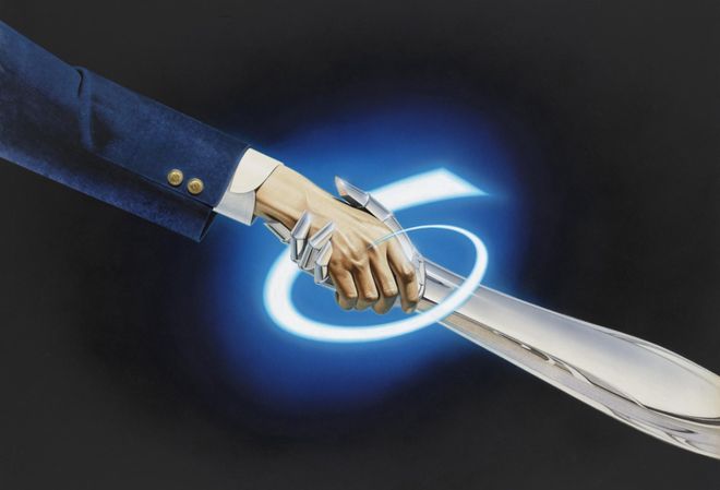 “光、透明和反射”是他对自身创作的核心概括。空山基以颜料这种有限的素材,不断挑战描绘光的轨迹:为了表现光,他必须先描绘空气;为了描绘空气,则要先表现透明;而关键则在于如何掌握反射的表现。正是这份执着,让他在机械美学领域独树一帜,以先锋理念、科技美学的极致表达和前沿艺术的开拓精神,重新定义了当代艺术与科技融合的无限可能。