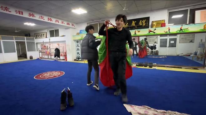 找老师的过程像“大海捞针”。江浙沪没人做这行,抖音上搜出来的全是民间老艺人在村里宴会、酒楼开业时的表演片段,要么是模糊的远景,要么根本联系不上表演者。张希越甚至一度在售卖二鬼摔跤道具的线上店铺求助,但对方发来的视频不太行。有一天,他在浏览社交平台时,意外刷到了一条程龙和赵强表演二鬼摔跤的视频,两人从小师承当地的老艺人,学习这门技艺。就这样,两位95后的山西青年成了张希越的“师父”。