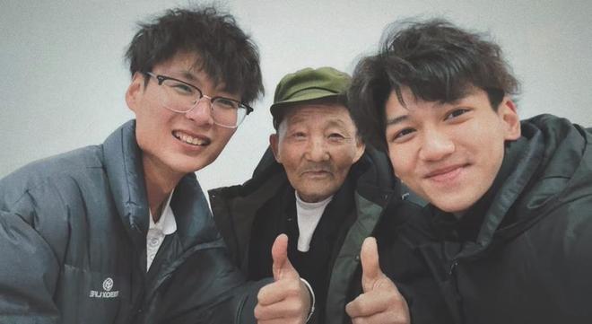 张希越(右)与“师父”程龙(左)、耄耋之年的“师爷”(中)合影。(受访者供图)