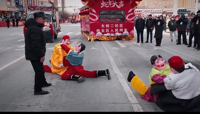 与舞龙舞狮象征着好彩头不同,即使在寥寥无几的商演机会中,寓意“驱鬼辟邪”的二鬼摔跤也往往排在最后一个。春节中的社火,可以说是二鬼摔跤可以登场的唯一机会。程龙给张希越算过一笔账:去年一整年,他总共只接到一场二鬼摔跤的商演,演出费300元,且这笔钱迟迟没能拿到手。