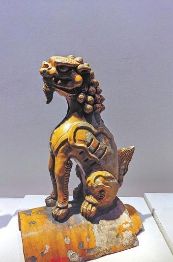观众会奇怪,一系列紫禁城中的建筑构件为什么也会出现在本展区中,如黄琉璃和三彩琉璃的垂兽和套兽、黄琉璃和绿琉璃滴水、太和门黄琉璃正吻,还有康熙款临清砖和太和门细部彩绘图等,其实它们都在无声地告诉我们,故宫作为世界文化遗产,既包括可移动的故宫文物,也包括不可移动的古建筑这两大部分。从收藏文物到重视古建,是认知上的重大飞跃。