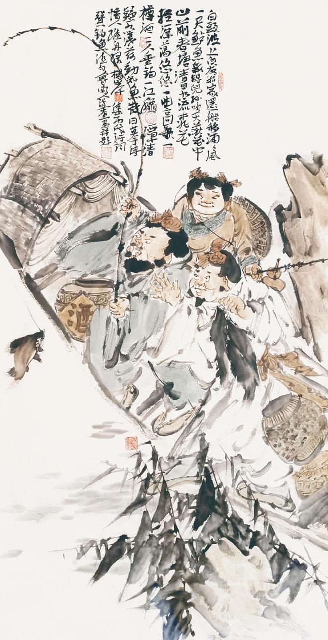五代石恪以狂草的笔意,画出深具禅意的《二祖调心图》;南宋的减笔人物画家梁楷创造了泼墨法,运用豪放而简洁的笔墨,生动的表现人物的神韵,创作了《泼墨仙人图》、《李太白行吟图》等杰出的写意人物画作品;明清时期也不乏优秀的水墨写意人物小品。写意人物画历史悠久,在近现代又得到长足的发展,出现了任伯年、徐悲鸿、蒋兆和等大家。