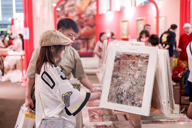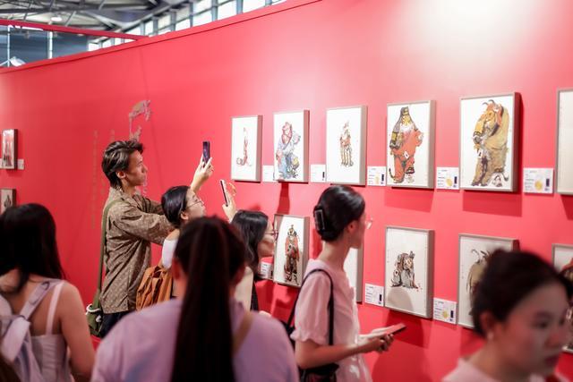 开幕当日,国风艺术成为最具人气的“磁场”。87岁高龄的国画大师戴敦邦携《踏凌霄·问道途——<水墨西游>特展》亮相,展出《大闹天宫》《取经路》两大主题系列作品,其中8幅手绘原作为首次公开,笔锋间的神魔气象引得观众屏息驻足。“戴门”弟子周一新、王悦阳、陈岱青、李云中与十余位青年艺术家组成国风阵营。从戴敦邦苍劲的笔墨风骨,到弟子们将水墨与插画、刺青等融合的尝试,生动诠释何为传承与创新。