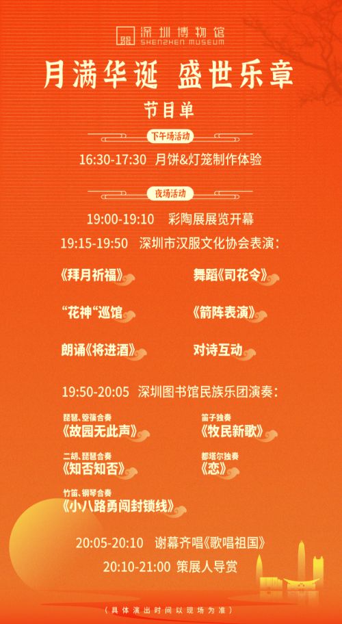 在即将到来的新一期“深博之夜”中,深圳博物馆将以丰富多彩的节目,为市民朋友呈现一场融合传统与现代的节日盛会。从中秋手作到古韵拜月,从诗词互动到丝竹乐声,整晚活动将串联手工体验、舞蹈表演、诗词朗诵与民族音乐等多元形式,让观众在节日的氛围中感受中华文化的深厚底蕴与艺术魅力,度过一个充满诗意与欢庆的夜晚。