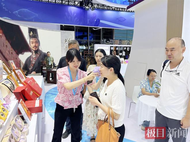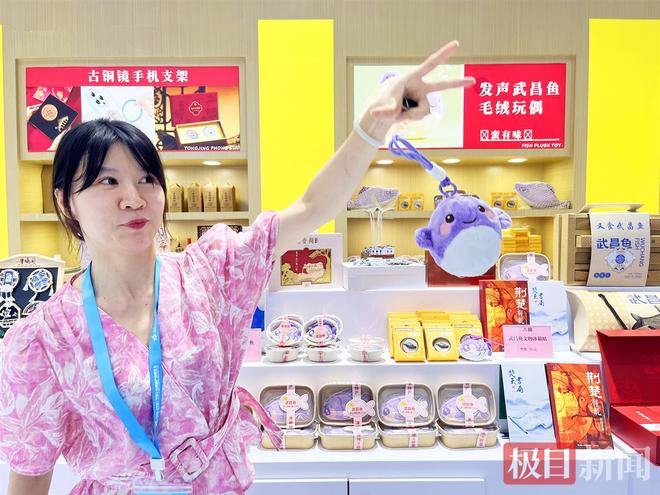 “蛮有味!”在鄂州展区前,一声地道的湖北鄂州方言从展台传来,引得围观人群阵阵惊呼——这是鄂州“吴都游礼”文创系列首秀现场,发声武昌鱼毛绒玩偶刚一亮相,就凭“会说话”的巧思圈粉无数,开展首日即不断接到订货单。