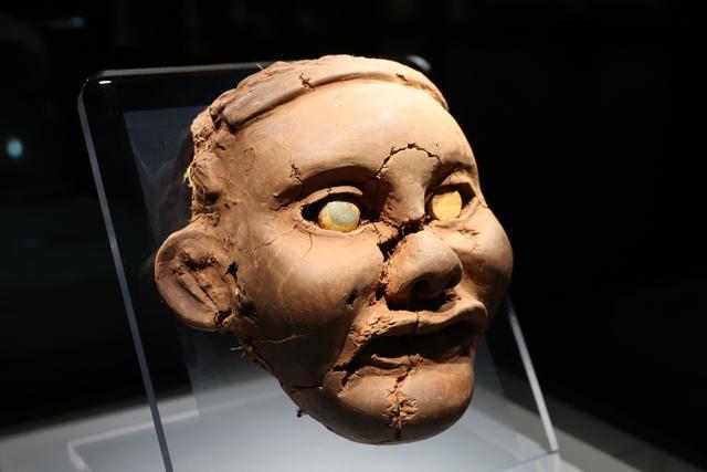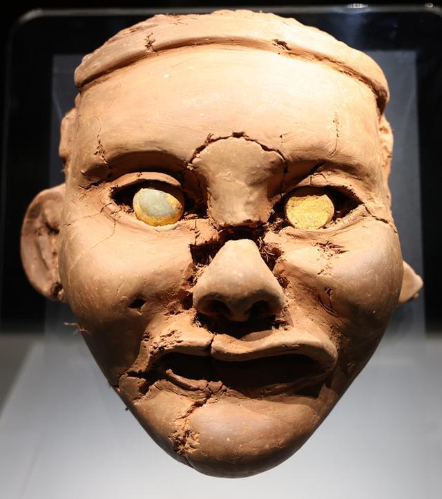 女神头像是一尊塑泥像,塑泥为黄土质,掺草禾一类植物;内胎泥质较粗,捏塑的各个部位为细泥质。“出土时,女神头像的颜面呈鲜红色,嘴唇涂着饱满的红彩,仿佛先民刚为她完成最后的妆点。”朝阳市牛河梁遗址管理处处长、朝阳牛河梁遗址博物馆馆长张雪说。经历数千年岁月,“红山女神”的鼻子已经脱落,下颌略有残缺,但左耳的耳洞清晰可辨,这说明当时的女神像佩戴着耳饰,是充满生活细节的信仰载体。“这种艺术表达标志着红山先民的雕刻水平达到相当高度,他们不再满足于简单的形态模仿,而是用艺术承载精神世界的追求。”