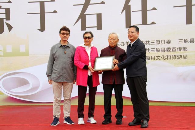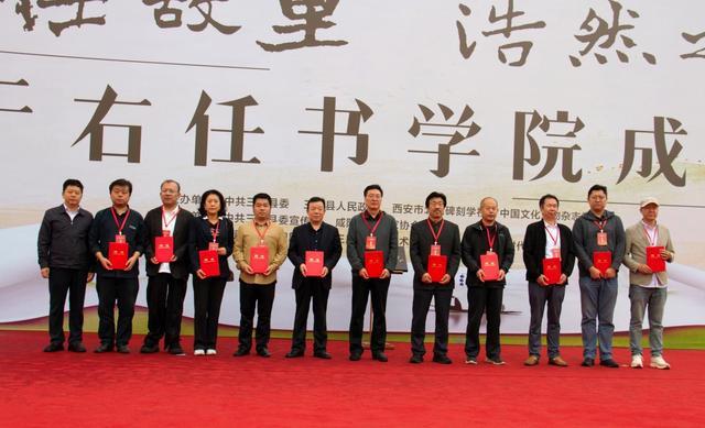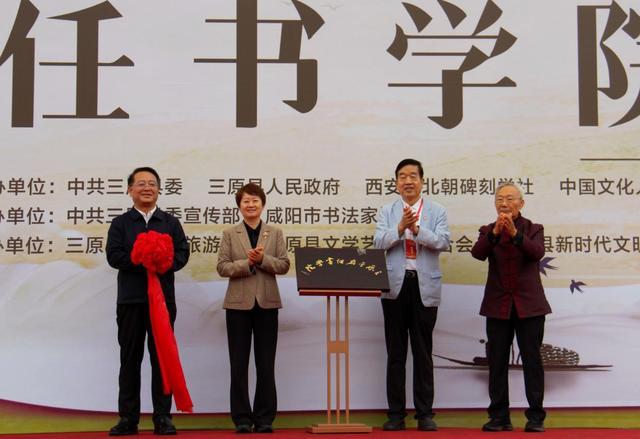县委常委、纪委书记、监委主任韩鹏宣读了三原于右任书学院组成人员名单。在热烈的掌声中,苏士澍、赵学敏、刘莉、赵俊强共同为三原于右任书学院揭牌。
