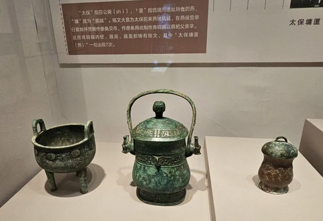 在“太保墉燕——房山琉璃河遗址专题展”中展出的作册奂器组合。2021年发掘小型贵族墓M1902,根据出土青铜器铭文记载,墓主人为“作册奂”,“奂”是姓名,“作册”是官职,属于史官或书记员。太保召公筑城后,在燕侯宫举行宴飨,赏赐作册奂贝,作册奂用这些贝为父亲铸造礼器。作册奂器及其铭文是北京建城史最早的出土文献,实证北京3000余年的建城史,在世界城市史研究中具有重要价值。