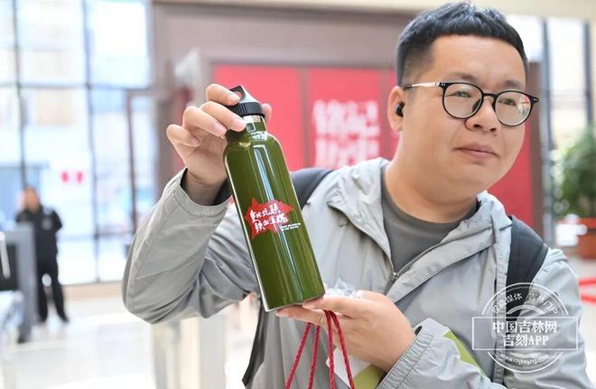 上午9时24分,这位幸运观众进场。他叫蔺海生,吉林农安人,现在长春居住,是第一次来吉林省近现代史展参观,还获得了一份小礼物——抗联主题保温杯。