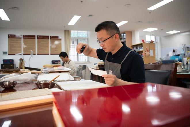 古籍修复是技术活,更是磨炼心性的过程。入职头几年还坐不住的金鑫,现在心能定下来,修复技艺也渐渐熟练。谈及未来的小目标,他的回答很简单:“争取修好每一本书。”