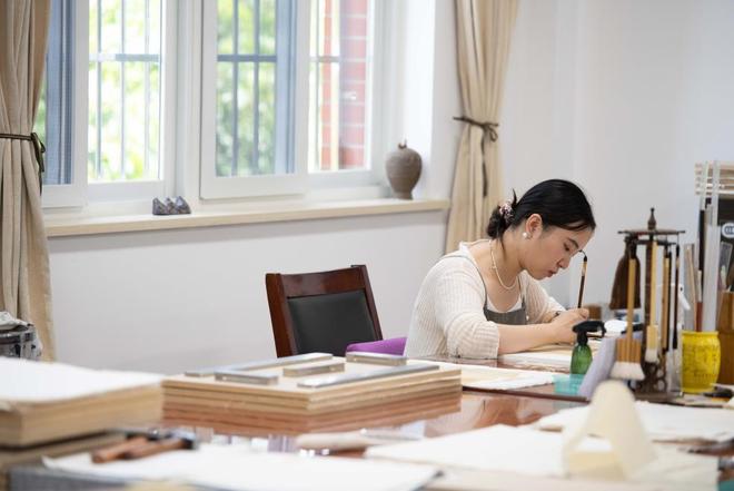 2022年,周亚寒从阅览岗调到古籍修复岗,她对“修书”有着特别的体悟。“我以前在阅览岗,不时需要向读者解释其想看的书暂时调阅不了,因为书籍破损无法翻动,需要修复了才能看。来到修复岗之后,不经意间我就会修到那些书籍,很有成就感。”周亚寒笑着介绍。