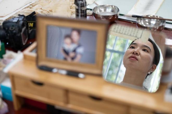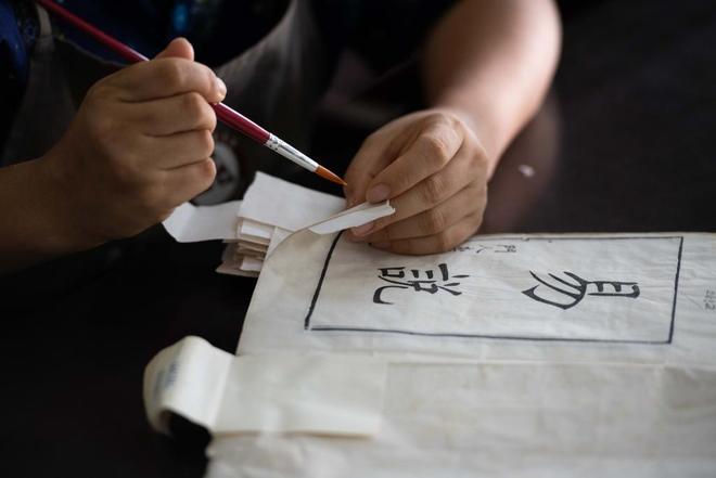 6月24日,在安徽省图书馆内,古籍修复师金鑫在拼碎片。