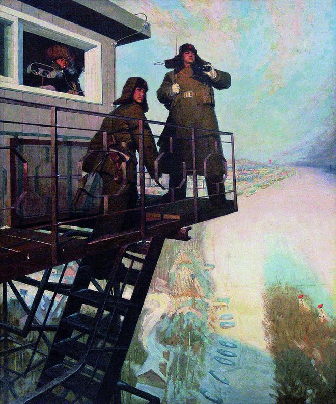 第一板块“领袖与革命”,展出了靳尚谊《毛主席视察上钢三厂》、陈衍宁《毛主席视察广东农村》、沈嘉蔚《为我们伟大祖国站岗》、黎冰鸿《南昌起义》等经典作品。