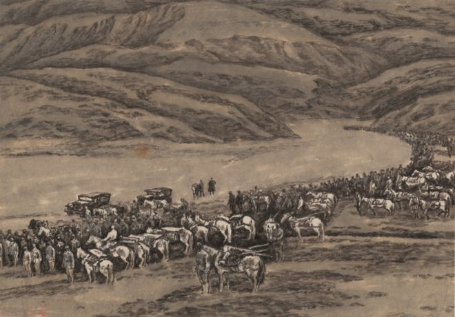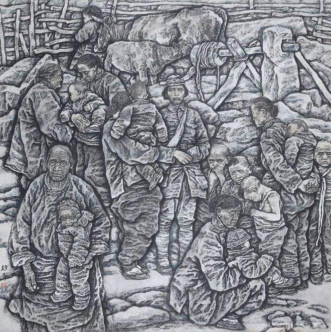 赵奇说:“抗战的历史在我心中早已留下深刻印象,我总是想通过画面将那种刻骨铭心的内容表现出来。甚至我画一片云,也想使它飘在那个历史的天空里。”