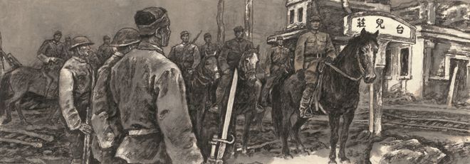 本次展览分为“山河铭记”与“时代回响”两大主题篇章。“山河铭记”篇章展出的是赵奇创作于20世纪80年代的经典连环画原作。当时为了深入表现抗战题材绘画,他独自一人踏上寻访平型关大捷遗址、台儿庄战役遗址、杨靖宇战斗旧址与东北抗联活动旧址等抗战相关遗址的行程,以文字与绘画的方式还原出这些可歌可泣的历史瞬间,将读者带入那段烽火连天的岁月。