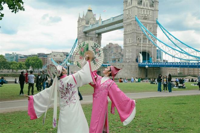 除了精彩的剧场演出,艺术团在伦敦塔桥、大本钟等地标性场所开展的快闪活动成为街头一道亮丽的风景线。演员们身着戏服在异国街头演绎东方经典,吸引大批路人驻足观看。