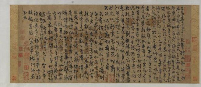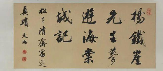 《杨维桢行书梦游海棠城记卷》全卷32行,401字,记己酉(1369)年春正月十三日夜梦游海棠城所见所闻,诗二首后又自跋,诗趣浓郁,文词瑰丽。书者借畅游梦幻仙境以寄予隐遁避俗的情怀,反映其道家思想。此作以小行书为主,夹杂浓重的章草笔意,结字欹正多变,章法跌宕起伏,笔墨精致,全篇形成一种激越的节律感和奇崛的空间感。书风古雅,气势磅礴,为迄今所见其晚年字数最多的精心之作。