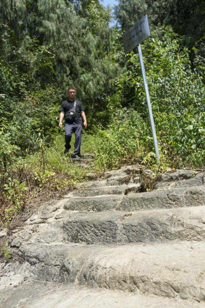 7月30日,重庆涪陵区百胜镇工作人员郭凤英对大山深处的古道遗址进行巡查。