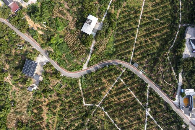 这是7月29日拍摄的重庆市涪陵区南沱镇睦和村荔枝园间的乡村道路(无人机照片)。