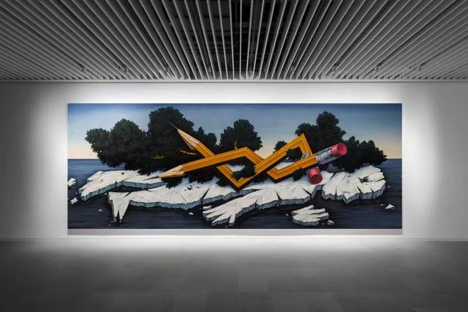 现场呈现的40余件绘画与装置作品,出自周松之手,从《秘境》对山水与机械质感的重组,到《新创世纪》中的寓言场景,无不体现了艺术家对熵增与熵减的独特理解。