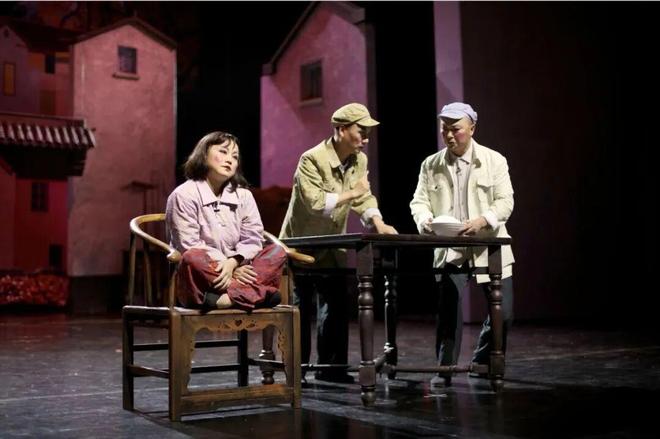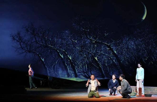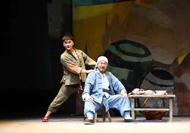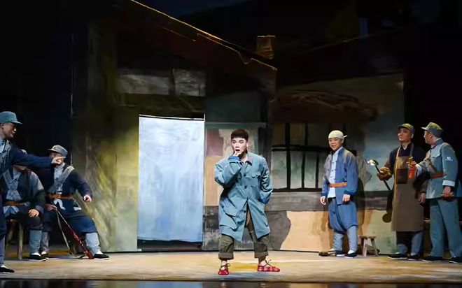《太阳山上》虽然是红色现代戏,但唱念做打等表演方式都在向传统黄梅戏回归。观众不仅能听到阴司腔、烟袋调等老腔老调,还能欣赏到“抢背”等传统戏曲表演中的“绝活”。该剧通过具有现实意义的主题、精准的人物塑造、巧妙的戏剧情境及剧种的特性,将一个有血有肉、有情有义的“底层小人物”呈现在观众面前。