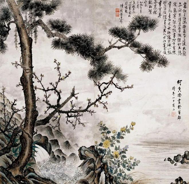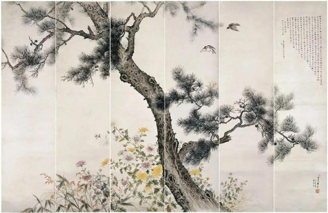 《松·菊》 何香凝 172×273cm 设色纸本 1931年 何香凝美术馆藏