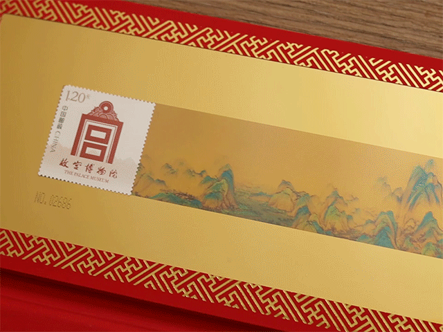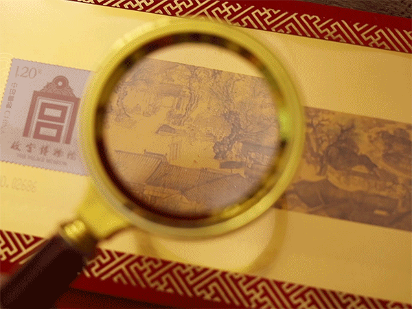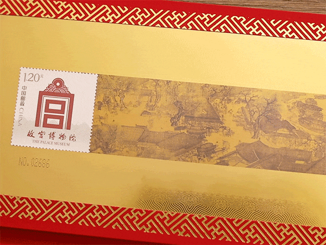 另外,在两幅画作的左右,各附赠2枚由中国邮政发行的故宫邮票。