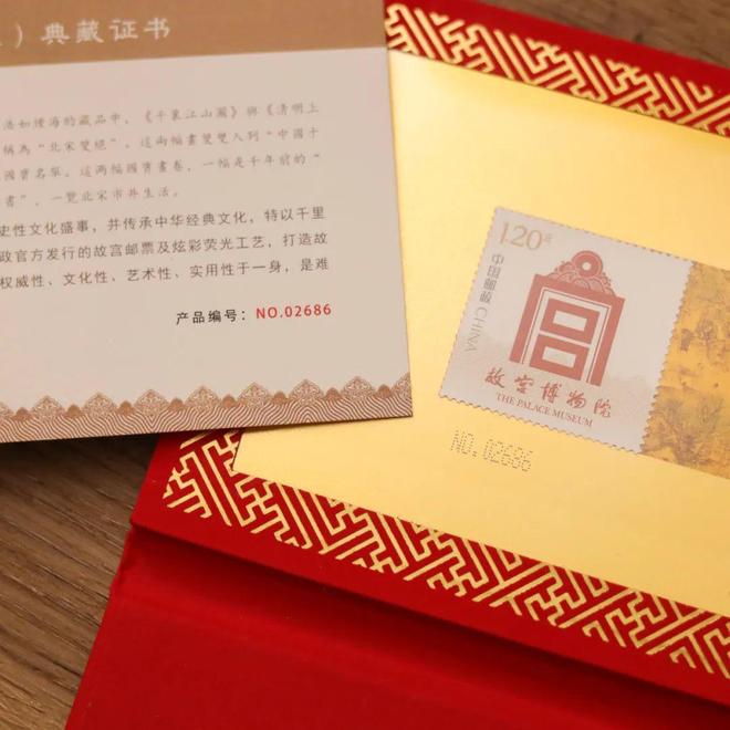 金箔版《清明上河图》《千里江山图》本次成套售价为299元,包含2幅金箔工艺画及4枚故宫邮票,性价比突出。